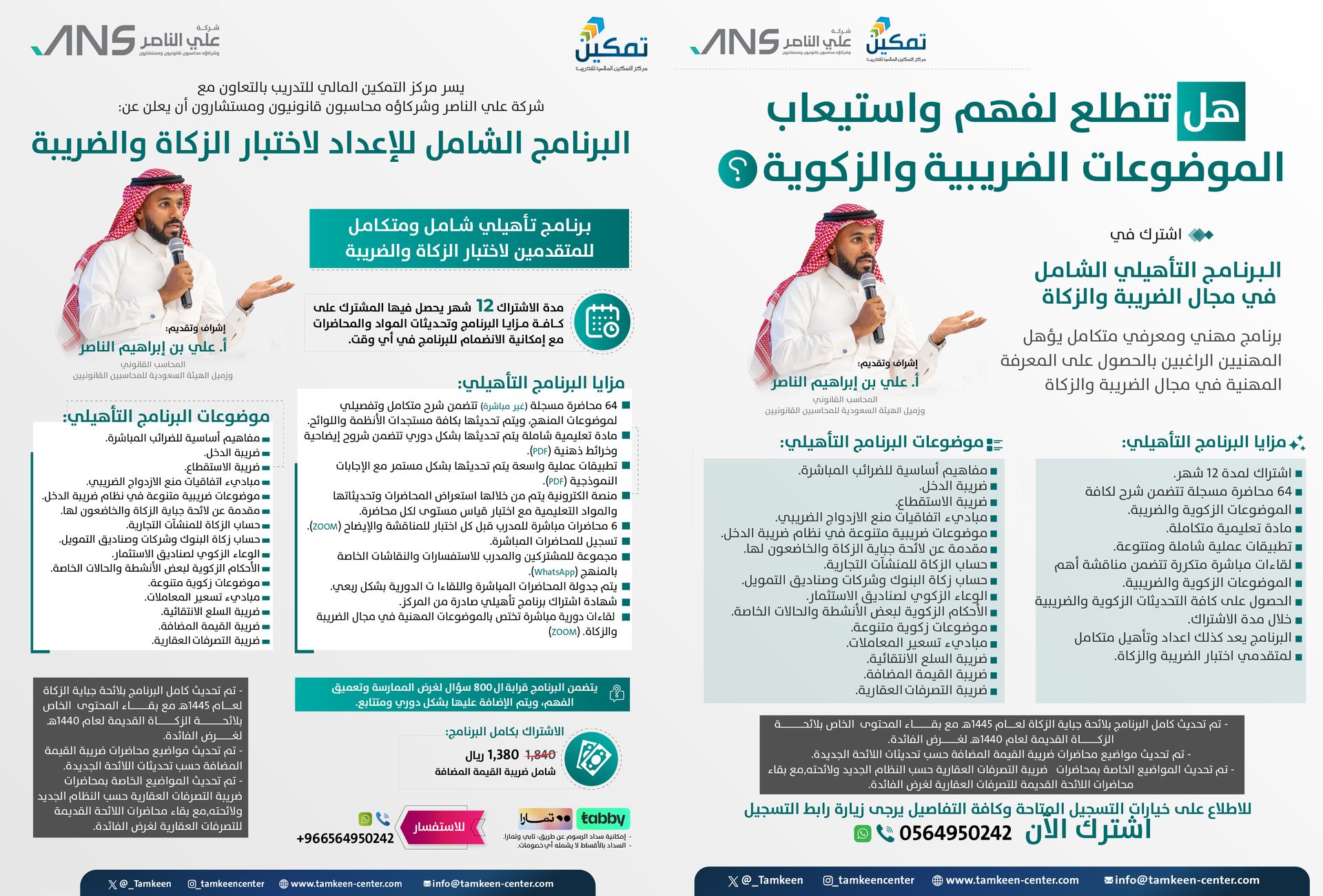 يهدف هذا البرنامج إلى تأهيل شامل في موضوعات الزكاة والضريبة وتطبيقاتها بالإضافة إلى تأهيل المتقدمين لاختبار الزكاة والضريبة بشكل متكامل وباشتراك مدته سنة كاملة للمتدرب مع كافة التحديثات خلال مدة الاشتراك.